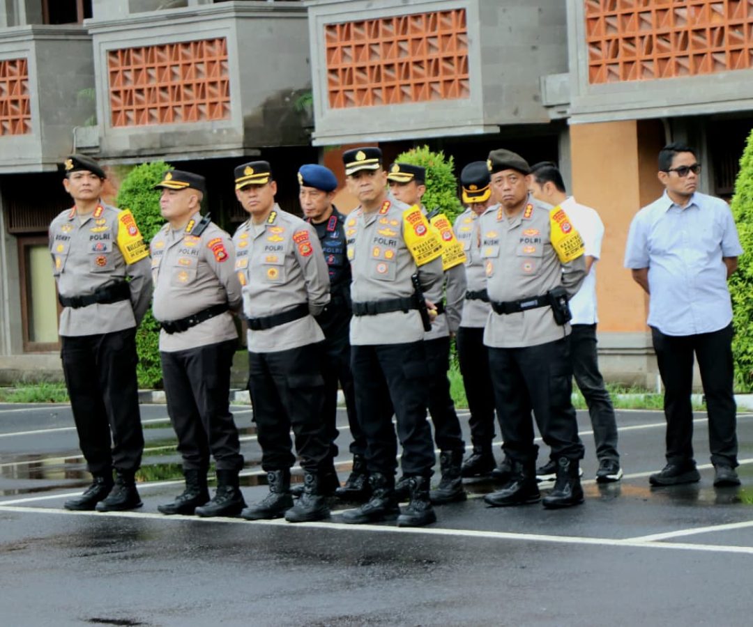 Kesiapan pengamanan ditandai dengan apel yang dipimpin langsung oleh Karo Ops Polda Bali, Kombes Pol. Soelistijono, S.I.K., M.H., di halaman belakang Mapolda Bali, Rabu (18/3/2026).