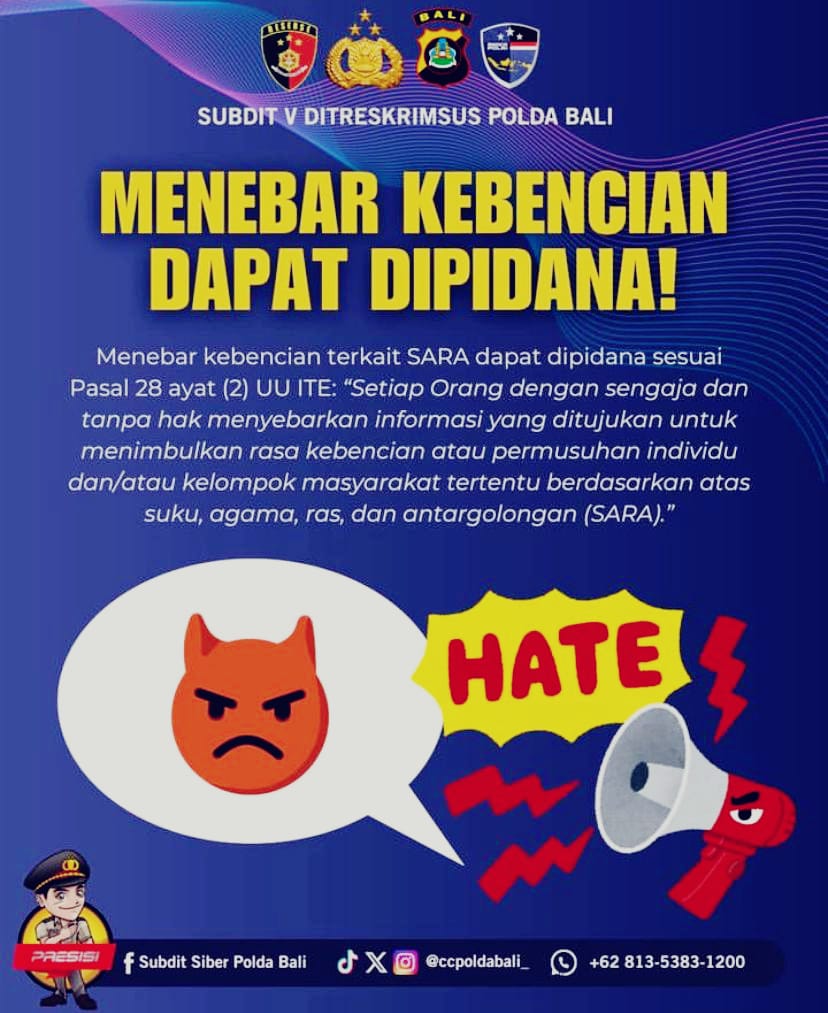Himbauan tesebut rutin dan terus menerus di gelorakan melalui Medsos ataupun akun resmi Subdit Siber Polda Bali dan Humas Polda Bali.
